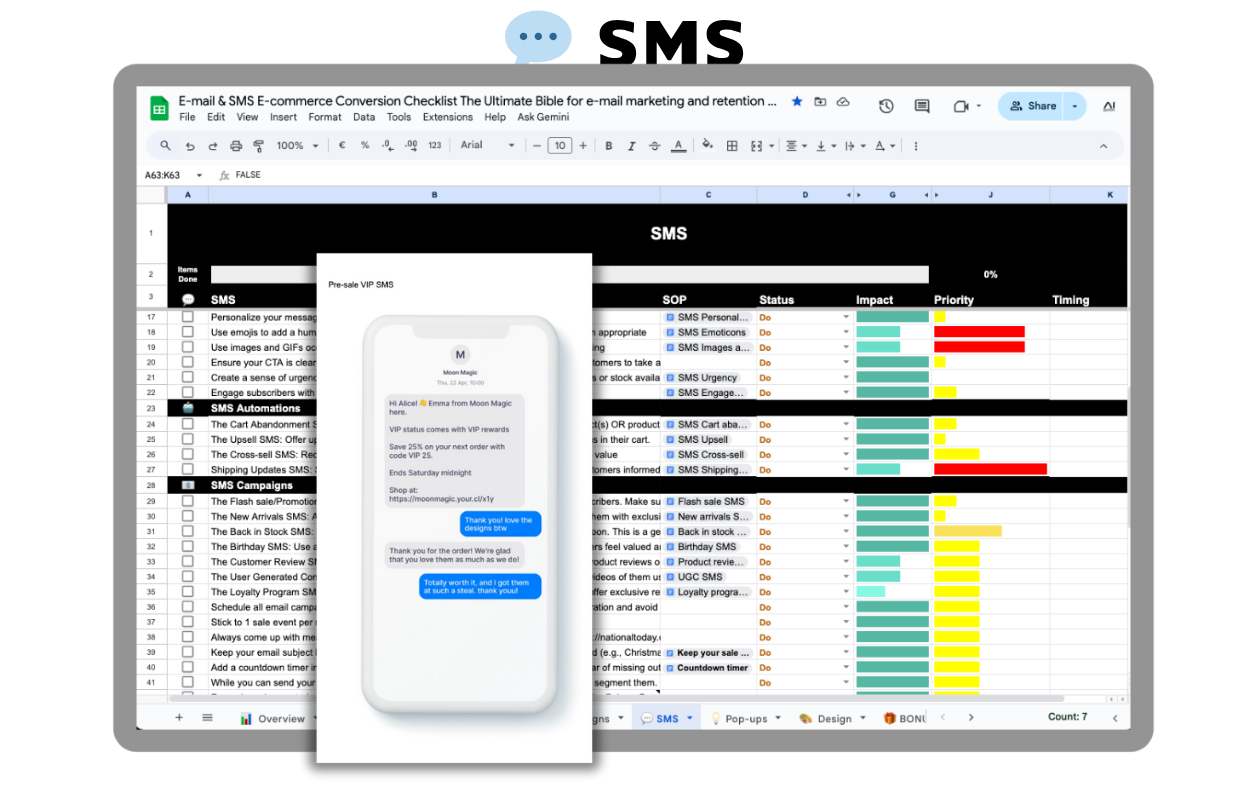 THIS EMAIL & SMS CHECKLIST INCLUDES: